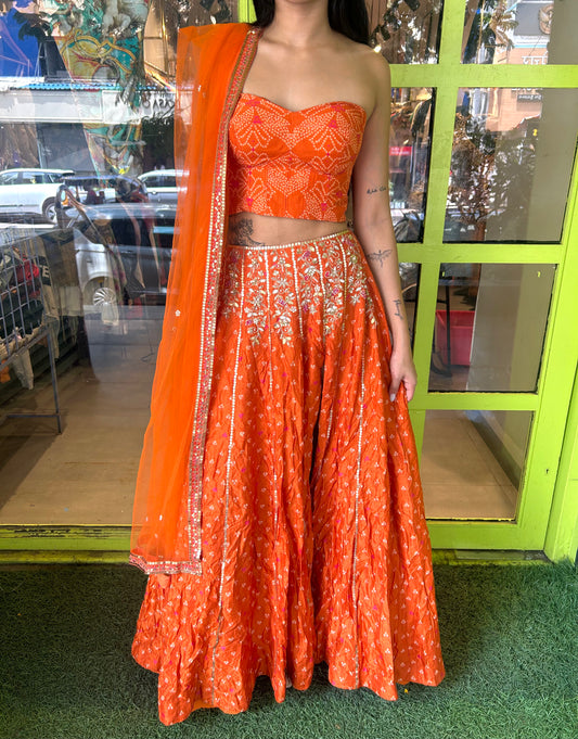 Drishti & Zahabia Rust Lehenga (Set of 3)