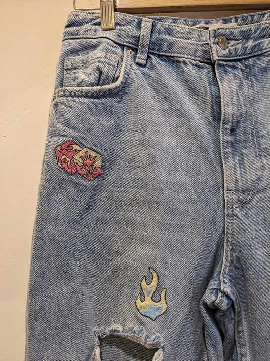 Bershka Light Blue Jeans With Embroidered Patches