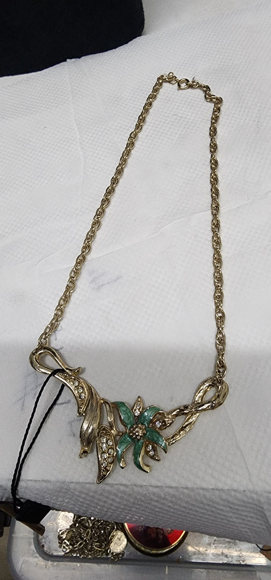 Green Enamel Floral Necklace