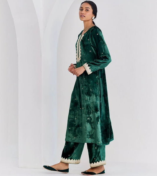 Ancestry Green Live Inaya Velvet Kurta Set Of 2