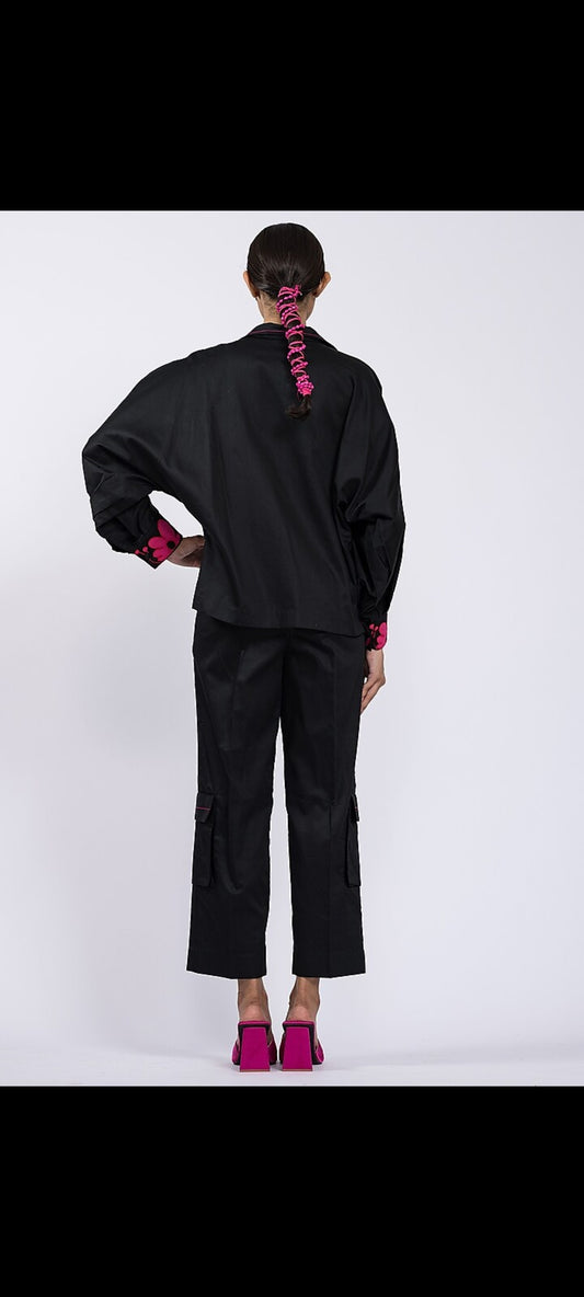 Dramebaaz - Black cotton embroidered cord set